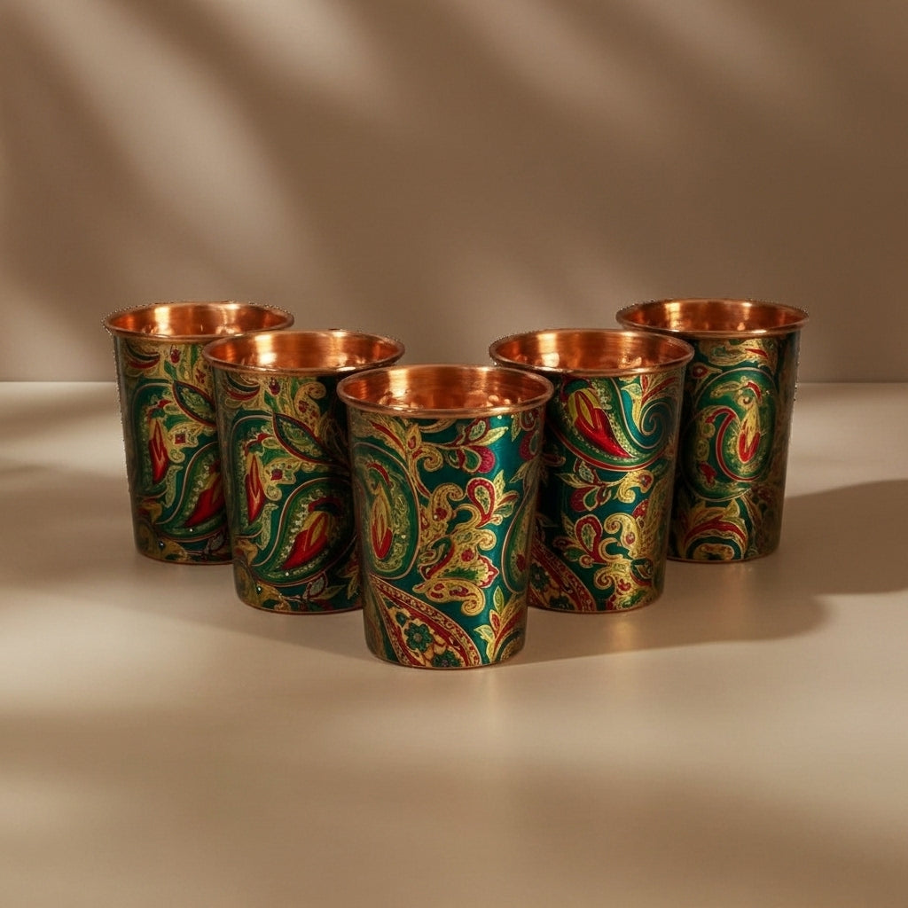 The benefit is that storing water in a copper vessel creates a natural purification process and keeps water cool.
