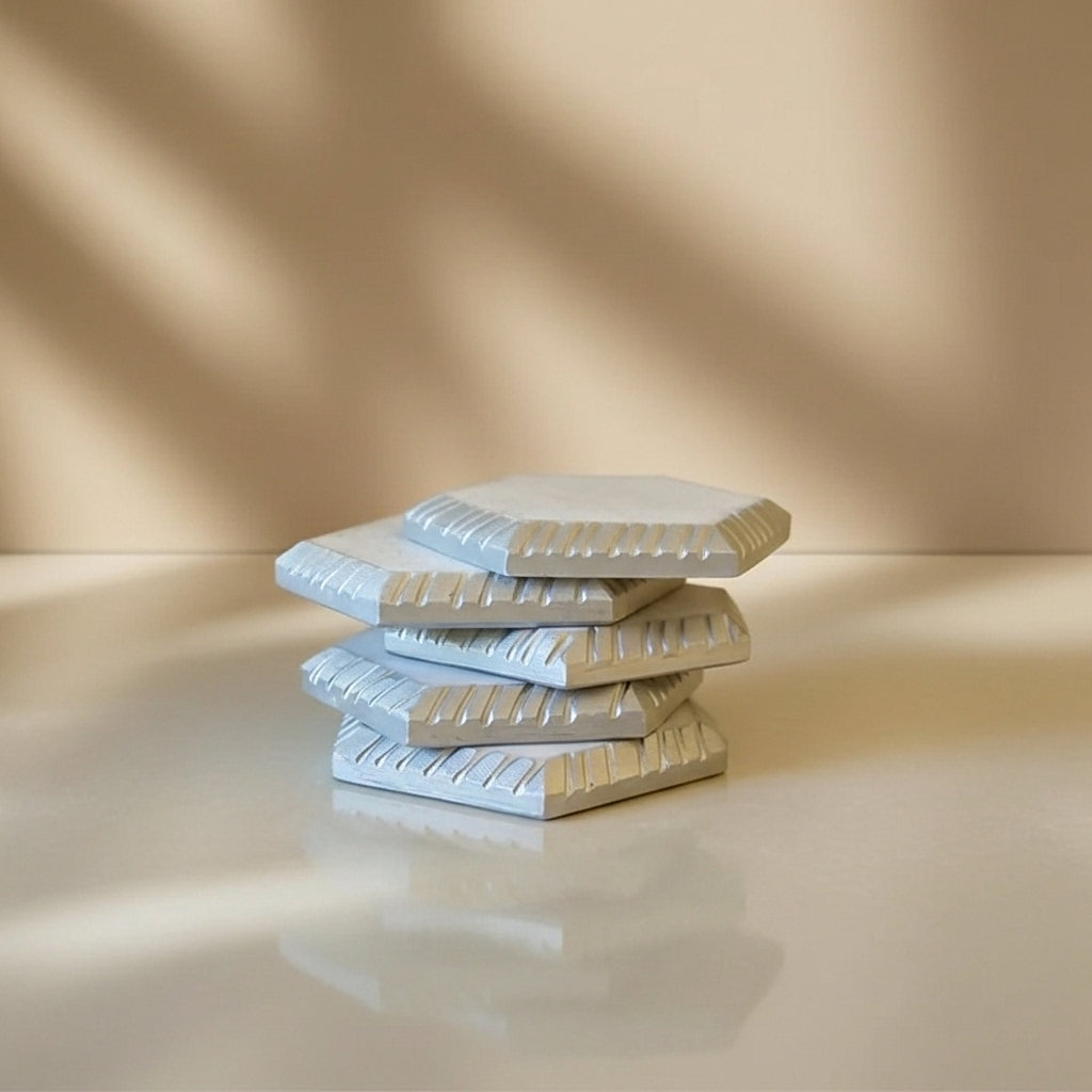 Add a touch of elegance to your table with our White Marble & Silver Edge Coasters. Featuring a sleek, glossy white marble surface, each coaster is beautifully accented by a hand-painted gold edge, adding a hint of luxury to any setting. These coasters protect your surfaces from spills and stains and enhance your décor with their sophisticated design. Whether entertaining guests or enjoying a quiet moment with a cup of coffee, these coasters are the perfect blend of function and style. Ideal for modern, minimalist, or classic interiors, they make a thoughtful gift or a stylish addition to your home. Set of five